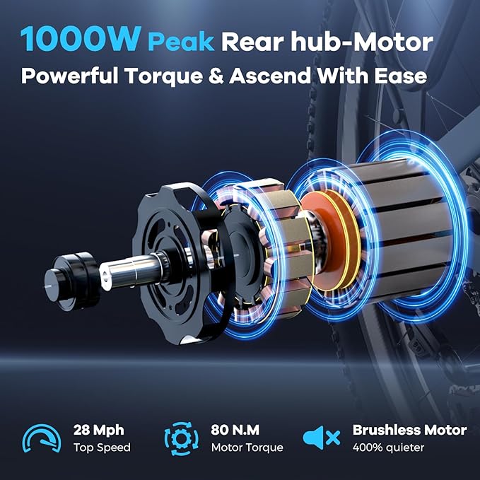 - π΄ββοΈ Powerful 1000W Motor Electric Bike for Adults β This 26 inch electric bike is equipped with a high-performance brushless motor, offering strong climbing ability and speeds up to 28 mph β perfect for daily commutes or weekend adventures.