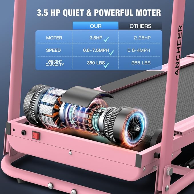 - 【Space-Saving Design】➤The soft-drop folding design of the ANCHEER folding treadmills for home allows for easy storage, making it an ideal choice for small apartments or home gyms. When not in use, simply fold the treadmill and tuck it away and use the transport wheels to move it to a corner, freeing up valuable floor space.