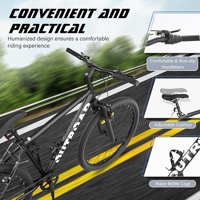 - 【Excellent adaptability】Mountain bikes are designed to handle various complex terrains, with excellent shock absorption and grip provided by the front suspension and sturdy anti-skid tires. Can easily drive smoothly on rugged mountain roads.