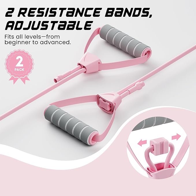 - Track Progress & Customize Resistance: The reformer machine built-in LED display shows reps, time, and calories, helping you monitor every session. Includes two bonus high-resistance bands that can be shortened or extended—great for progressing from beginner to advanced levels.