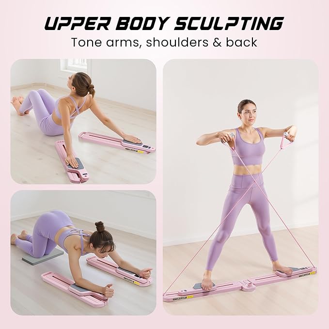- Your Complete Home Pilates Kit: This multifunctional pilates reformer machine combines a Pilates board, resistance bands, non-slip base and fitness tracker—perfect for full-body workouts at home. Ideal for women looking to tone, stretch, and strengthen safely and effectively.