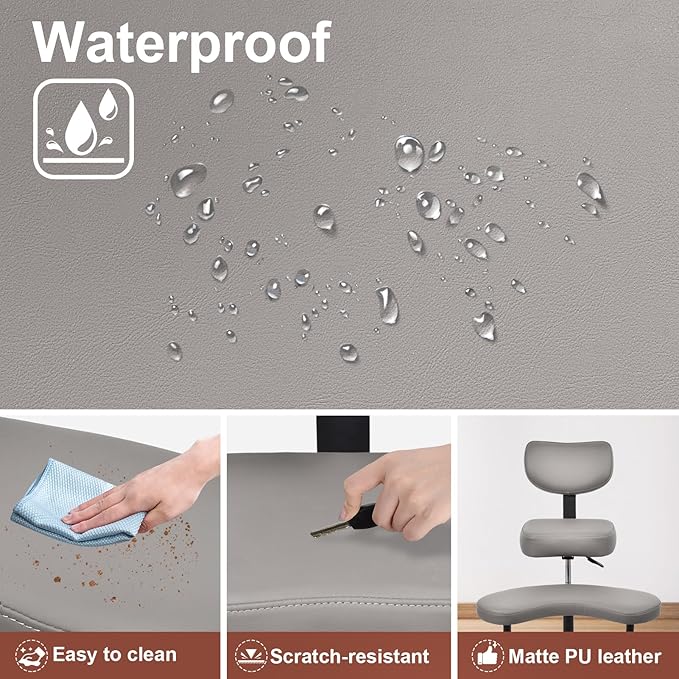 Meditation Chair Cross Legged ADHD Office Chair for Adults with Wheels Ergonomic Back Support and Leg Rest for Multi Position Criss Cross Sitting Kneeling and Yoga Height Adjustable, Leather Style