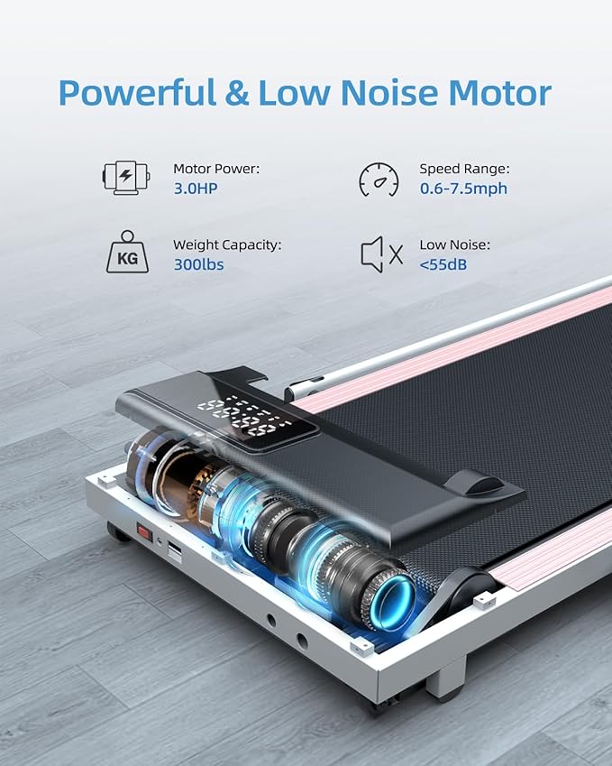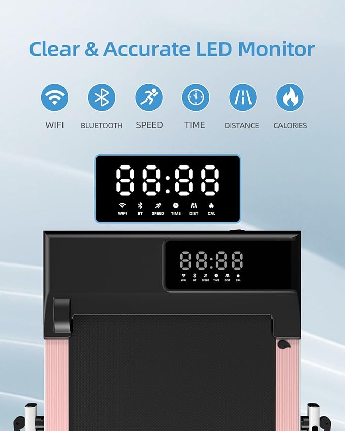 - Wider& 5-Layer Running Belt: We provide a large 43.3*16 inch area. The running belt of the home smart treadmill is longer than others, so you don't have to worry about falling, and this under desk treadmill is designed with a 5-layer anti-skid running belt, which can enhance the safety of users during exercise. This product is impeccable for both office workers and students